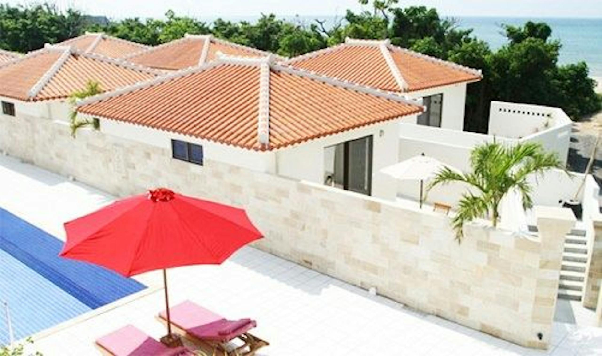 施設から徒歩1分ほどのプライベートビーチもあり、施設内にはプールも完備しています!